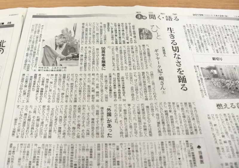 朝日新聞社によると、問題があったのは連載記事「ひと模様 大道芸人 ギリヤーク尼ケ崎さん」。