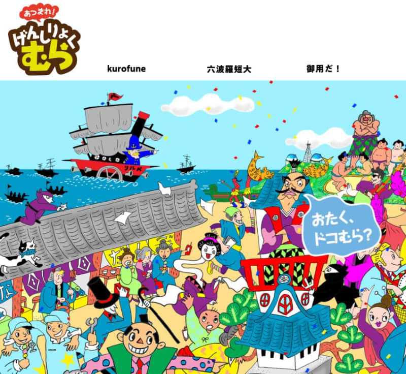 開設は8日。ホーム画面いっぱいに戦国武将や妖怪、ピエロのような大勢のキャラクターを、コミカルなタッチで掲載。